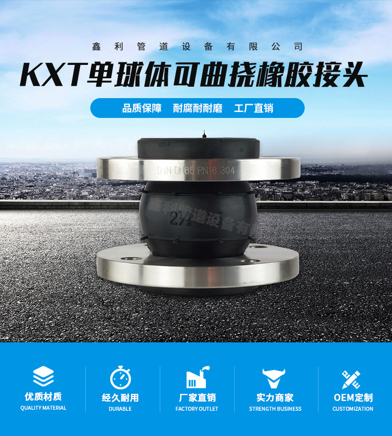 補(bǔ)償器能夠向每個方位開展偏移吸納。硫化橡膠軟性連接頭廣泛運用于管路聯(lián)接全過程中,對各種各樣物質(zhì)具備較強(qiáng)的適應(yīng)能力?,F(xiàn)階段應(yīng)用的橡膠軟性連接頭多見兩邊法蘭片,用以與管路聯(lián)接。正中間的原材料全是塑膠材料。一旦管路產(chǎn)生很大偏移或轉(zhuǎn)變,橡膠軟性連接頭很可能被扯動,進(jìn)而直接的毀壞硫化橡膠軟性連接頭。